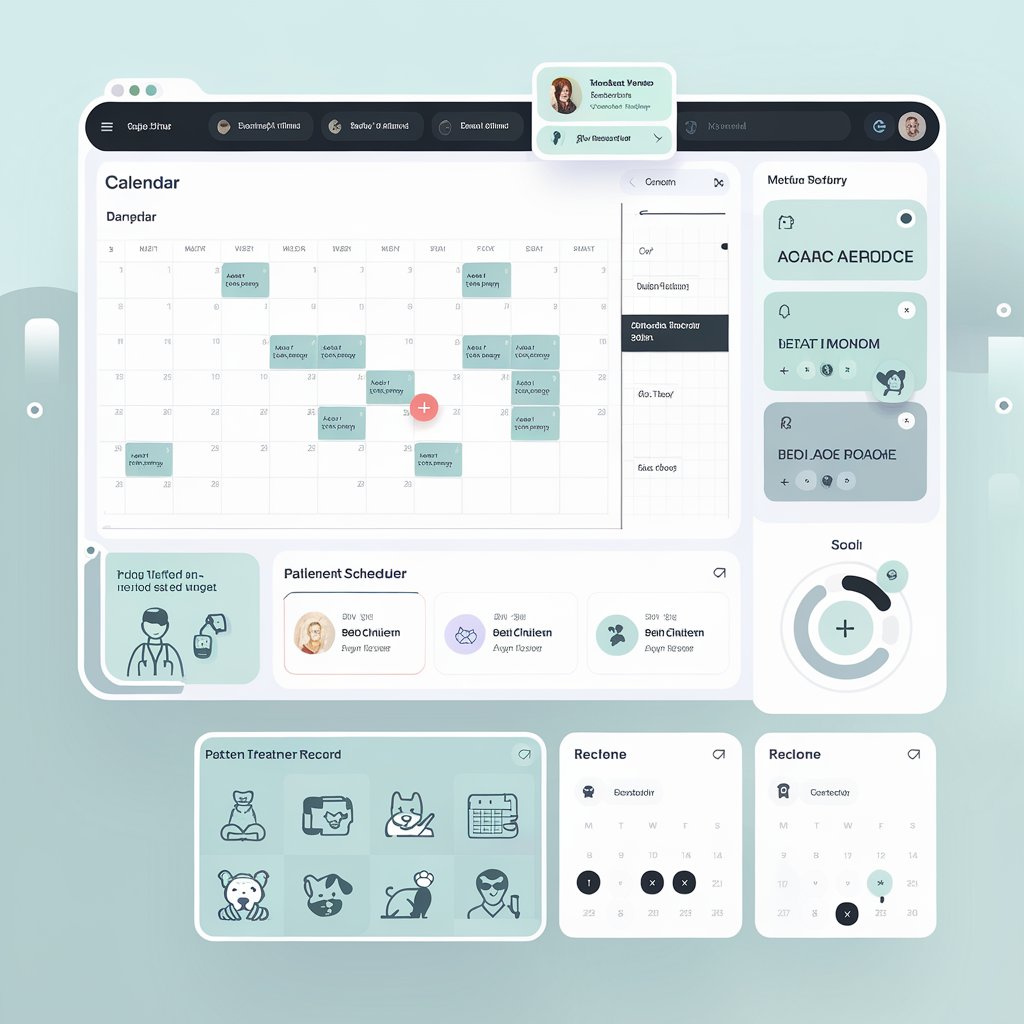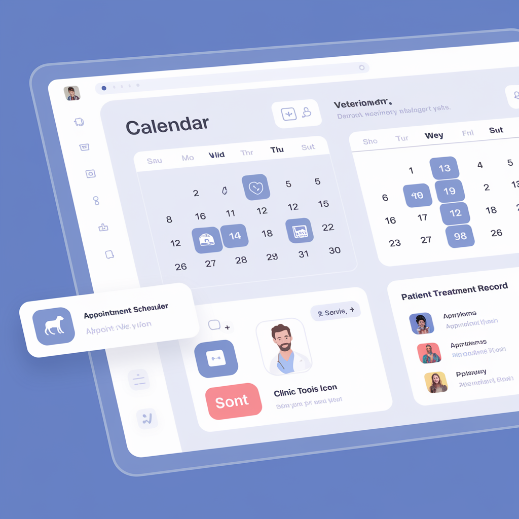 Digital tools for managing patient appointments, treatment records, and daily operations in a veterinary clinic.